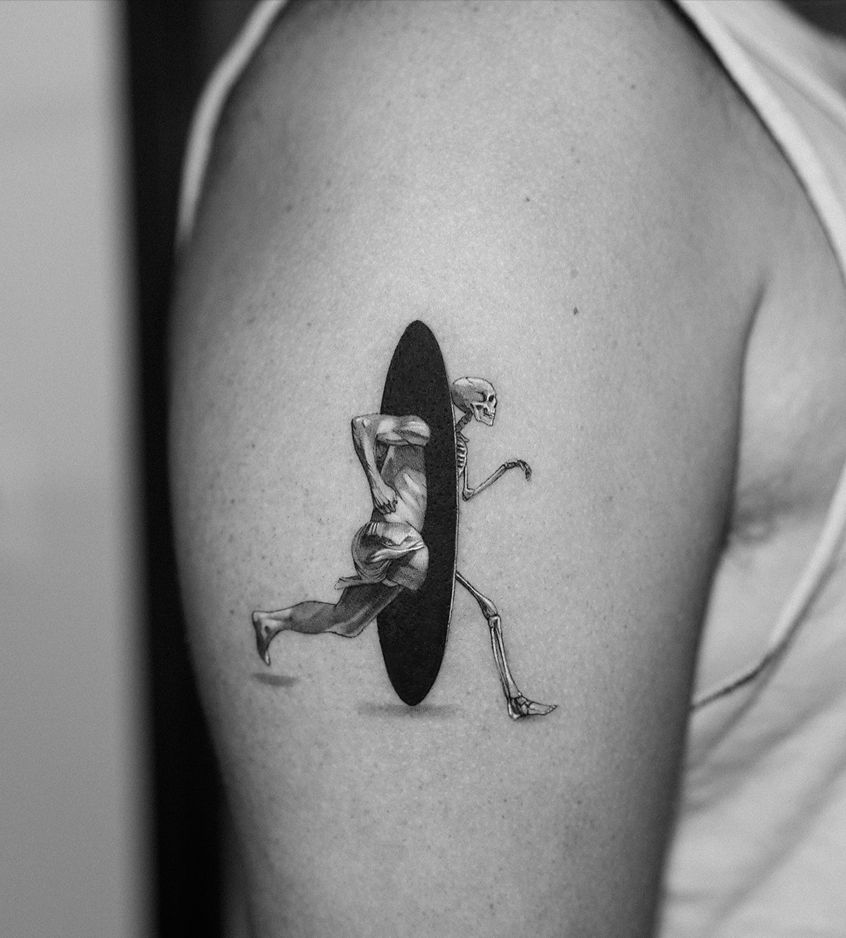 Ideal placements include the forearm, calf, back, or thigh, where movement enhances the dynamic effect. Whether done in fine line, traditional blackwork, or stylized sketch form, these tattoos are for those who don’t take life or death too seriously rather more fun.