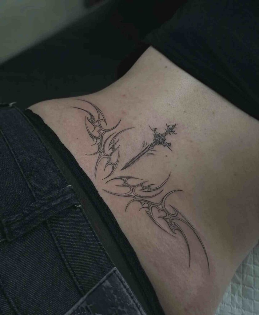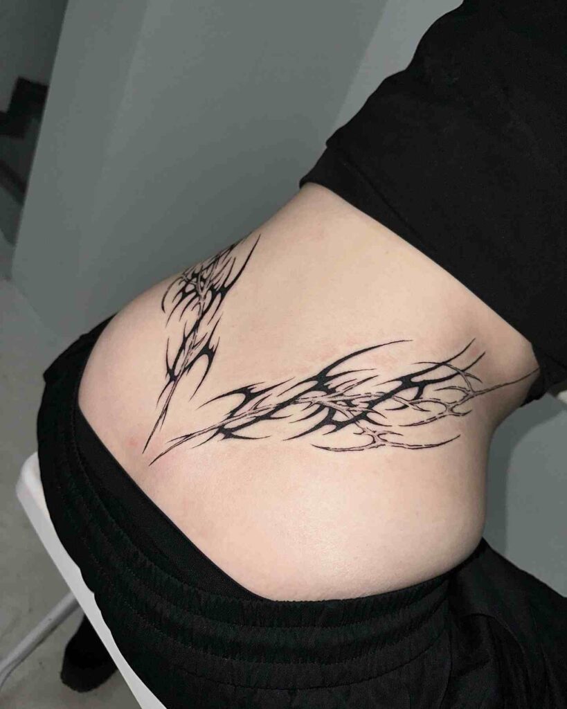 If you’re into bold, intricate, and mysterious tattoo designs, cybersigilism could be an awesome inspiration for some next-level ink. The lower back placement gives it that edgy, underground feel, but with cybersigilism, it turns into something futuristic and magical.