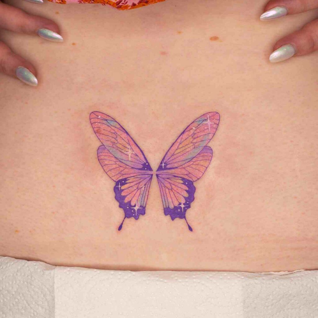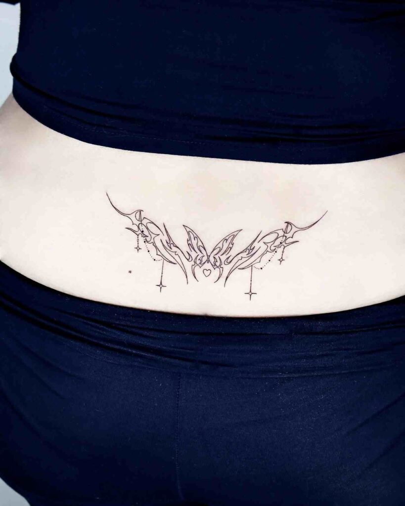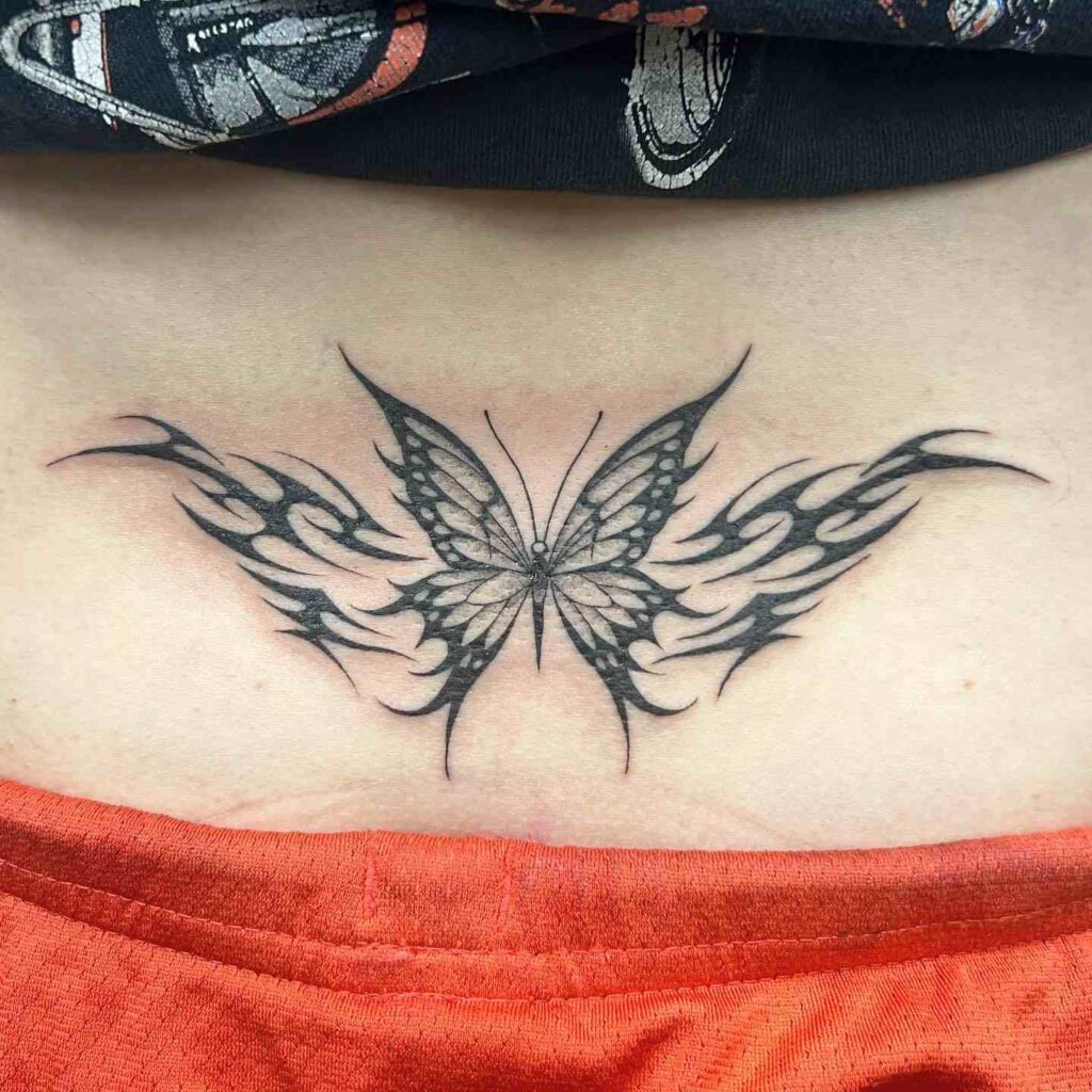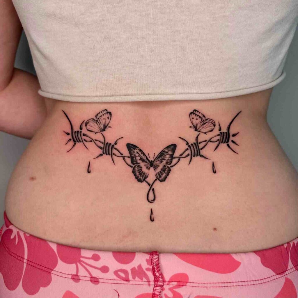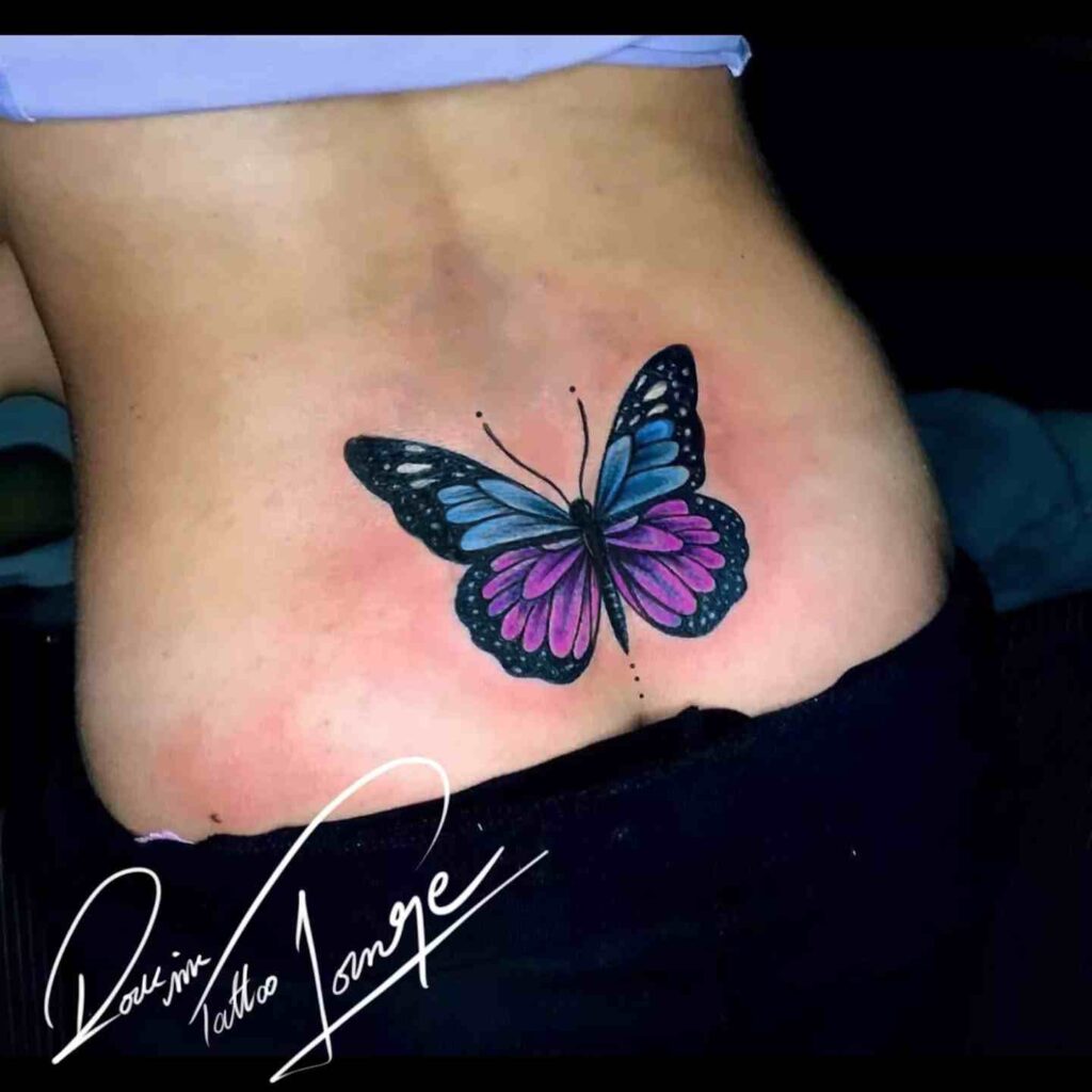 Butterfly tattoos are timeless and a perfect choice for women. Symbolizing growth, transformation, the cycle of life, and hope, they hold deep meaning. You can experiment with various styles, sizes, and designs to find one that suits your personality and resonates with you. Here are some of the best butterfly tattoo designs for the lower back. For more extensive butterfly tattoo ideas, do check out this butterfly tattoo ideas.