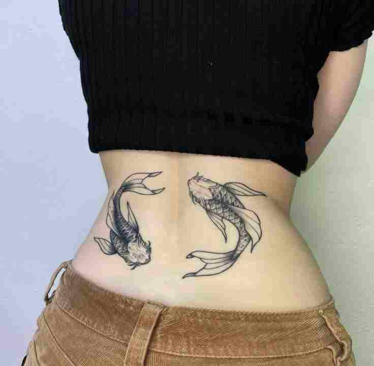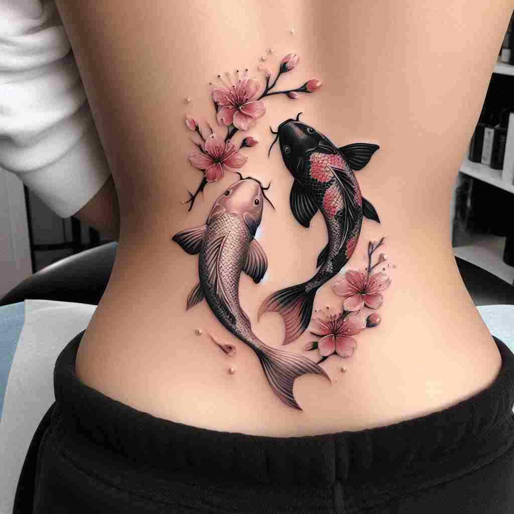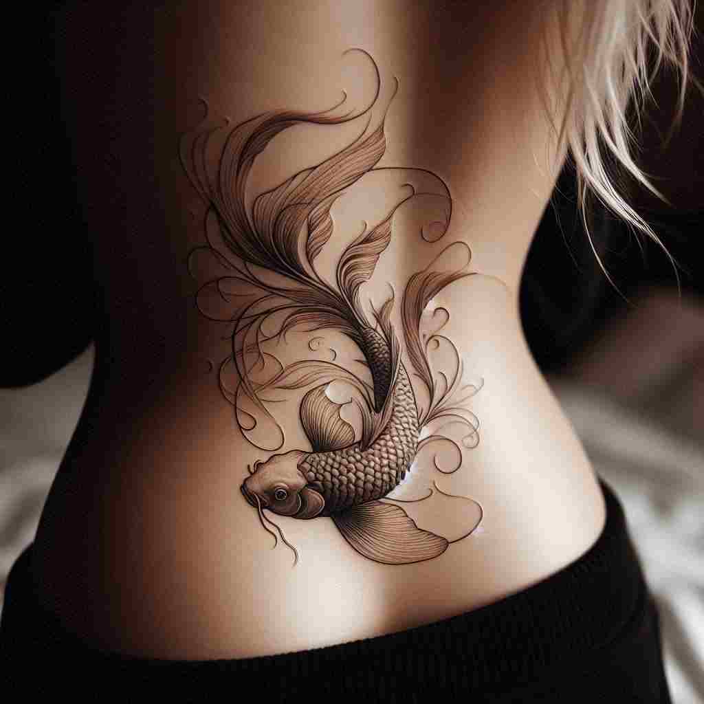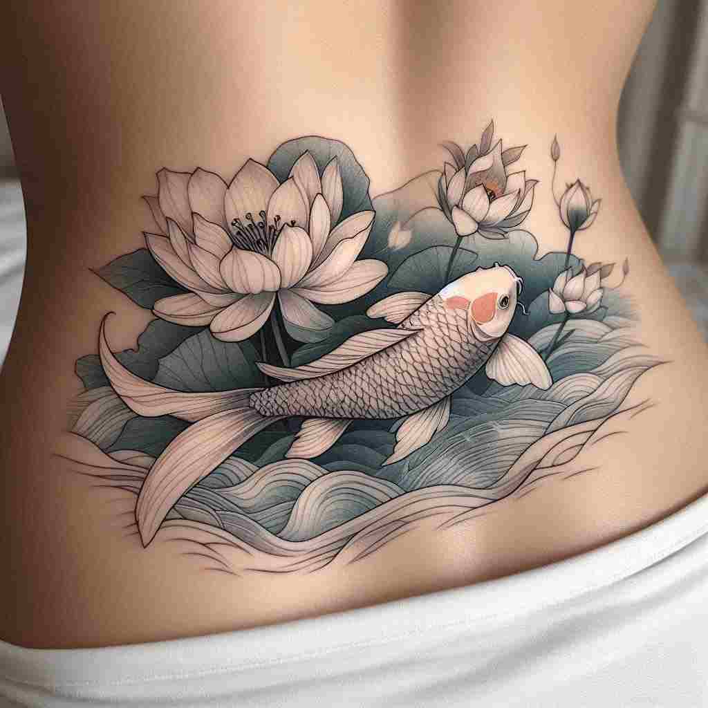 If you need something elegant and meaningful, here are the Koi Fish tattoo designs for lower back. A koi fish tattoo on the lower back can be both elegant and powerful, symbolizing strength. Two koi fish circling each other in a yin-yang pattern can represent balance and harmony. While adding lotus flowers can symbolize spiritual growth, while cherry blossoms can add a delicate, feminine touch.
